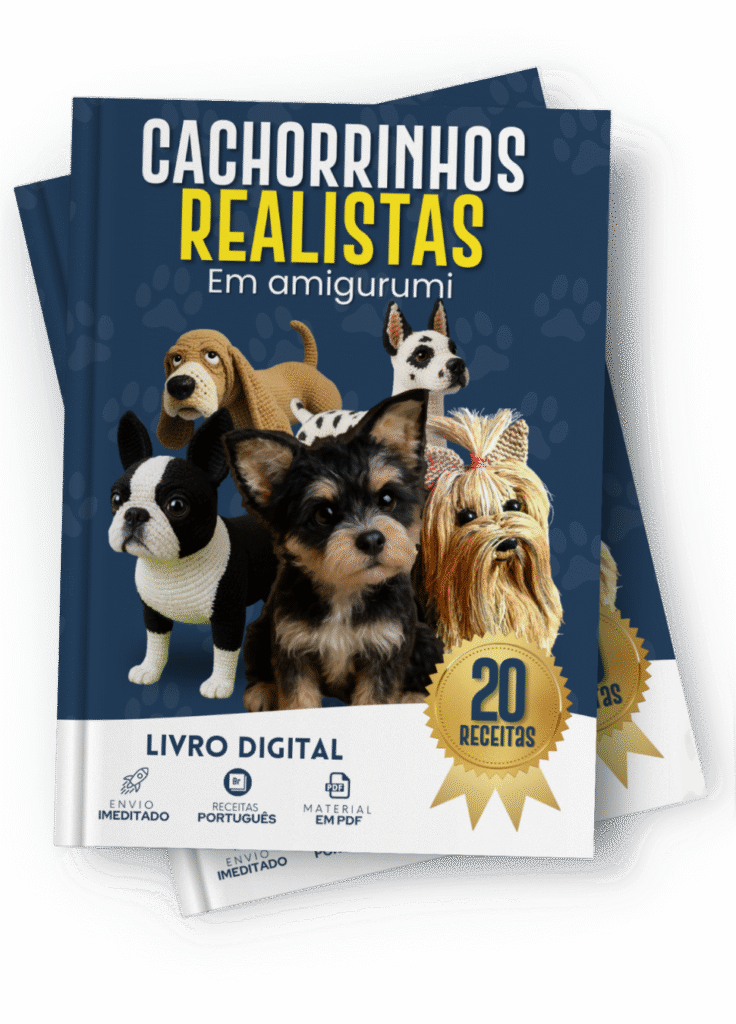 A apostila contém 20 receitas exclusivas de cachorrinhos amigurumi realistas, com passo a passo detalhado, técnicas modernas de modelagem e ilustrações para facilitar a criação. Tudo é 100% em português.